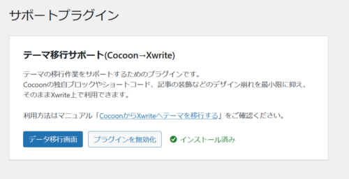 Xwriteの乗り換えプラグインだとCocoonのフルスペック機能が利用できる