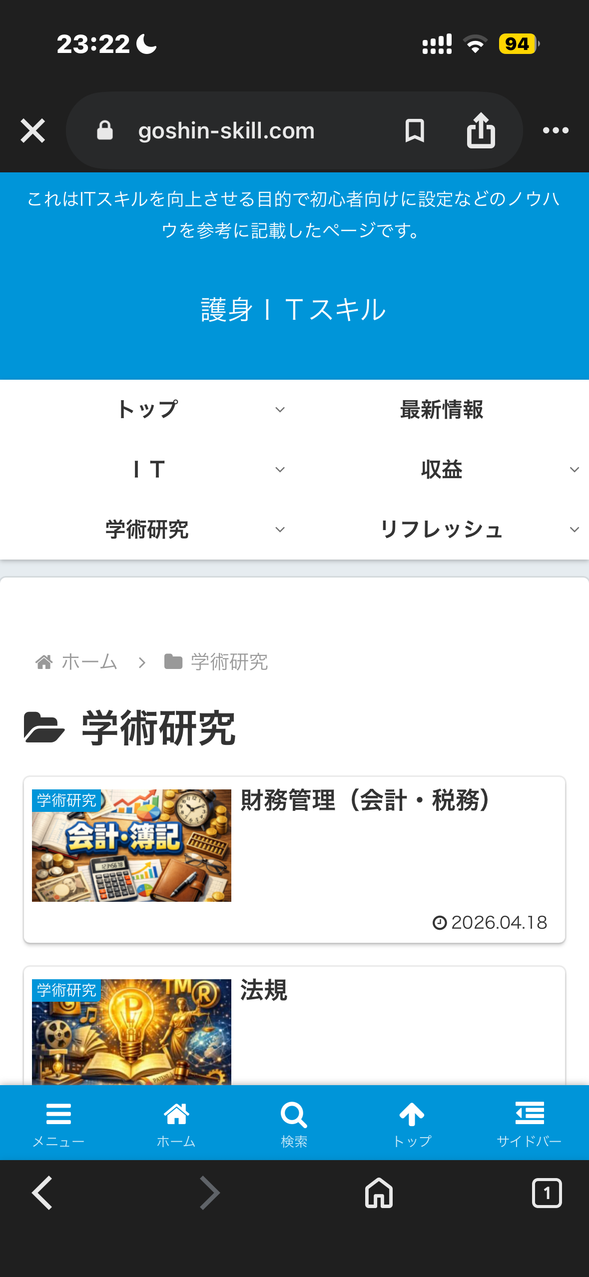 スマホのフッターに表示されているメニューアイコン(左下)をタップすると