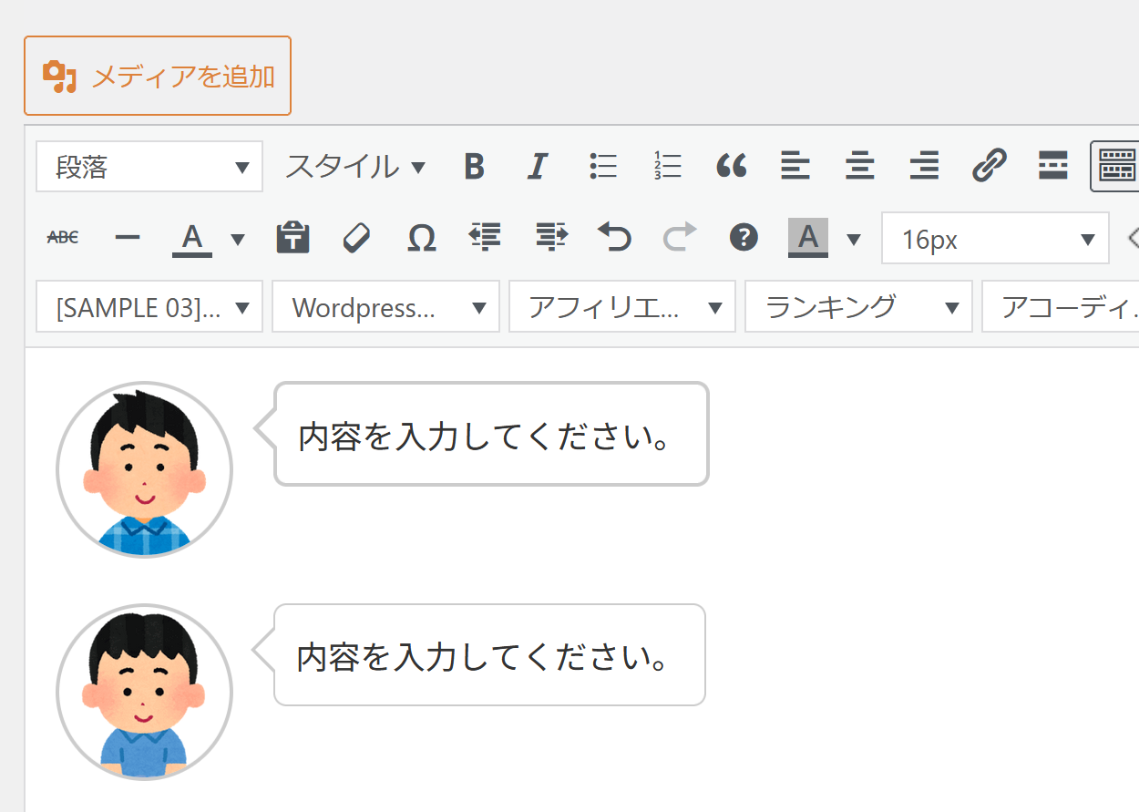 クラシックエディター(ビジュアル)で吹き出しを選択した。