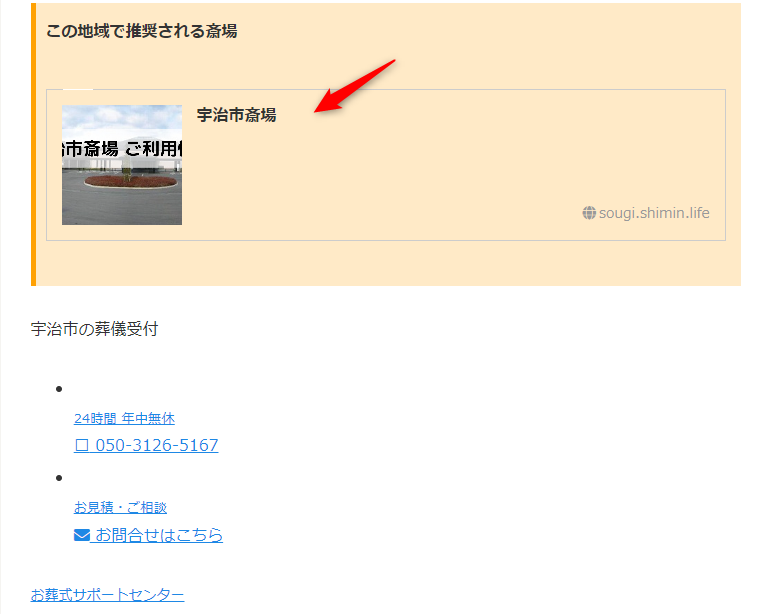 表示されるページ事例 https://sougi.shimin.life/area/area1003/area2010/area3495/