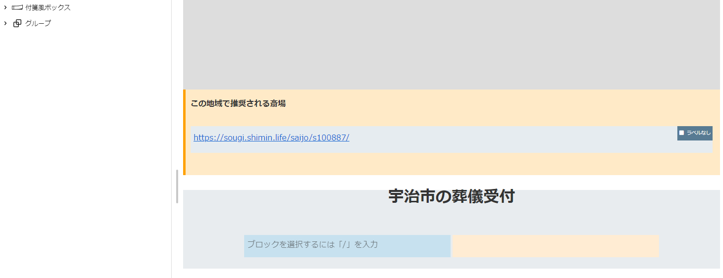 https://sougi.shimin.life/area/area1006/area2026/area3917/添付画像は表示されないページです。ここのブログカードのラッパーは白抜きボックスで作成されているようです。