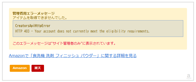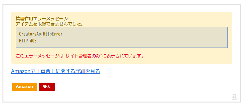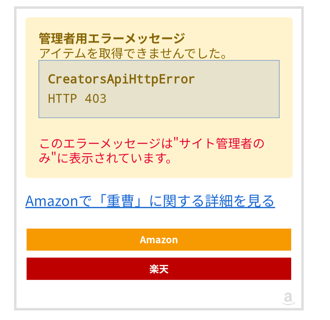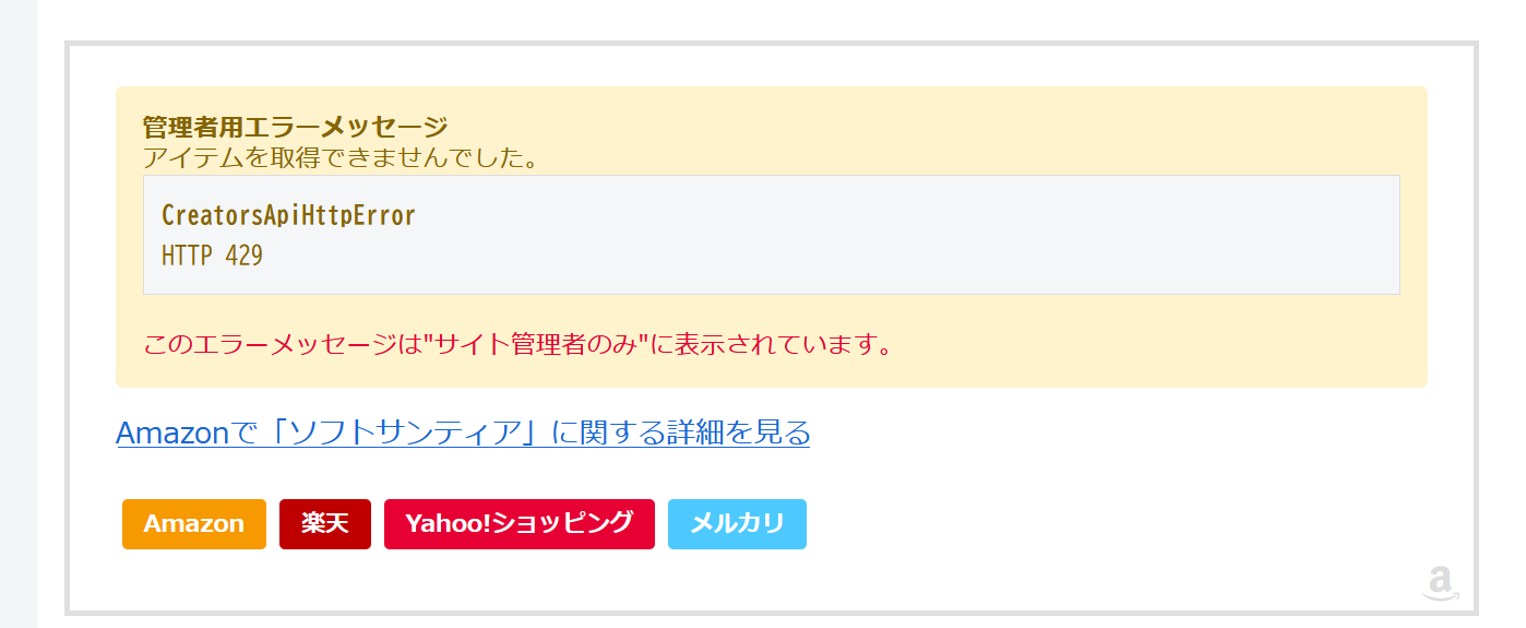 その場合、制限に引っかからなかった商品リンクは表示され、引っかかったものは同様のエラーを出して表示されないというケースが僕の環境でも観測されています。しかし、しばらく時間を空けて再度ページを読み込むと、改善される可能性が高いです。