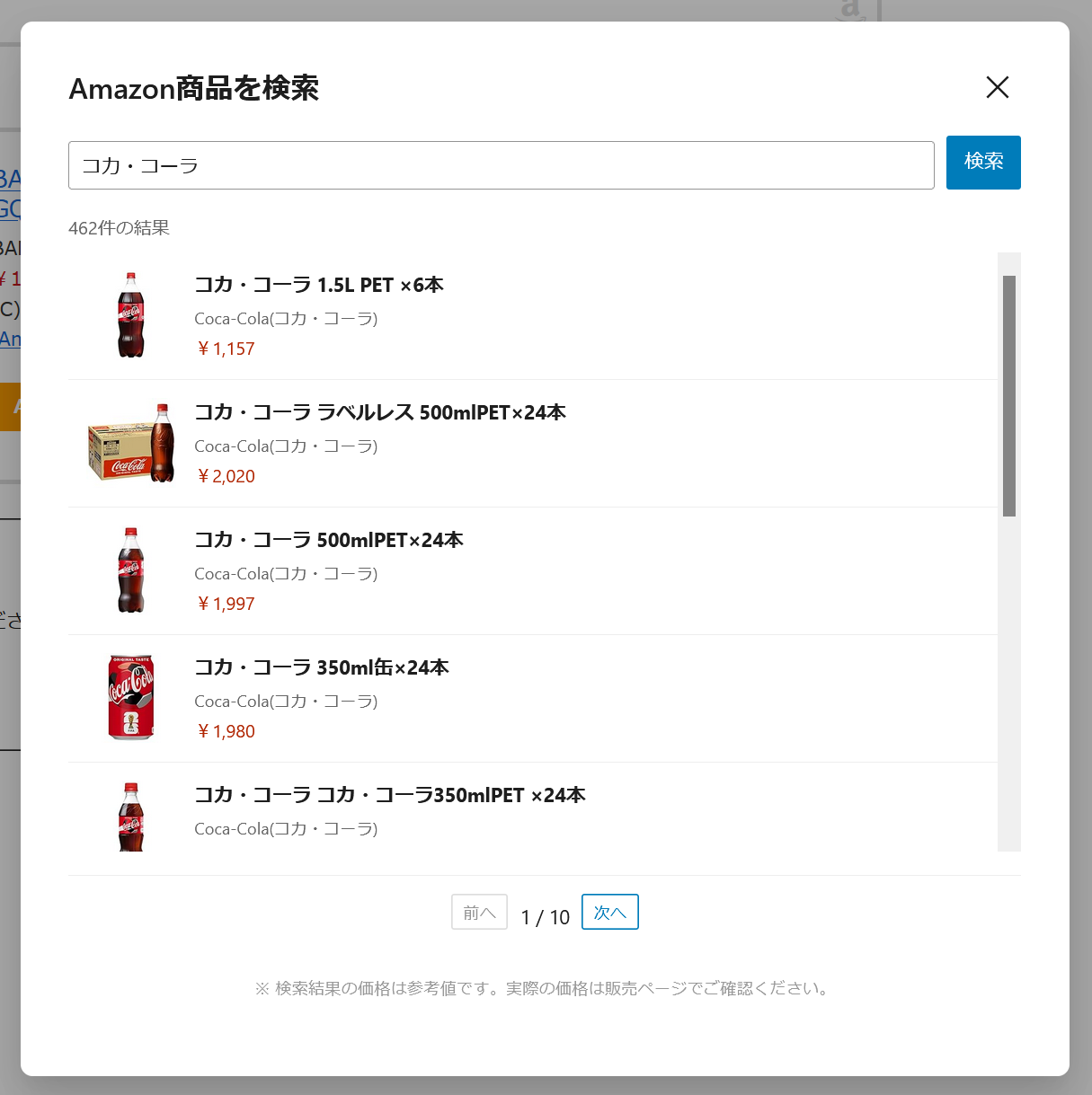 機能をCocoonに統合したので、Amazonと楽天は商品をダイアログから検索してその商品の静的リンクを貼り付けられるようにしました。