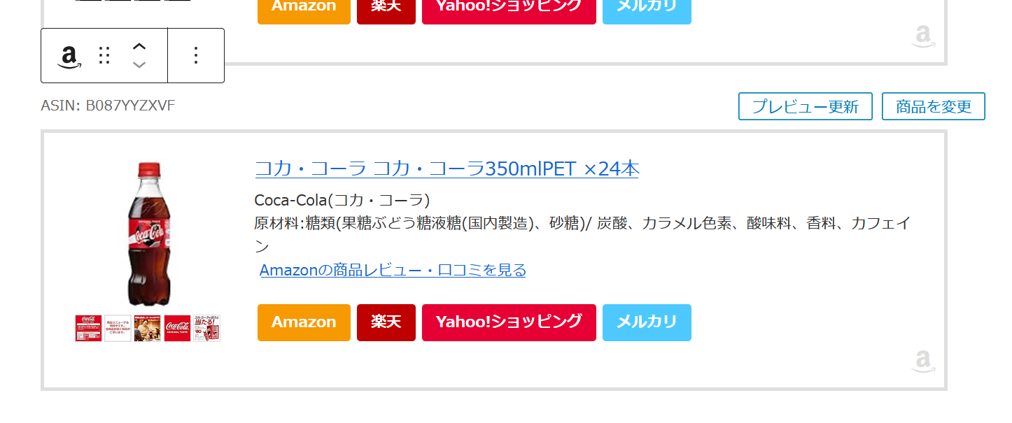 ただ今回、自分でもCreators APIなどのそういった仕様を見ていて、ちょっと先が不安な部分があったので、Amazon商品を検索して静的HTMLをブログに貼り付けるという仕様のブロックを先週ぐらいに作成していました。