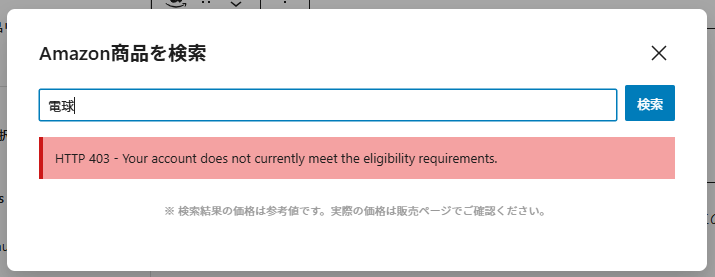 今回、再度読み込んだら表示されたということなので、おそらくアソシエイツアカウントの資格不足が原因と考えられます。ただ商品カードが表示されるということは、完全に資格不足ということではなく、単にAmazonのAPI制限に引っかかっただけだと思います。Amazon APIは以前からだいぶ厳しくなっており、1回のページ読み込みに複数のAPIを動作させようとすると、制限を超えたものはエラーになる可能性が高いです。よほど大手で売上がない限り、大抵の人はこの制限にかかるものと思われます。