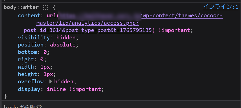 content: url("<?php echo get_cocoon_template_directory_uri(); ?>/lib/analytics/access.php?post_id=<?php echo get_the_ID(); ?>&post_type=<?php echo get_accesses_post_type(); ?>&t=<?php echo $timestamp; ?>") !important;