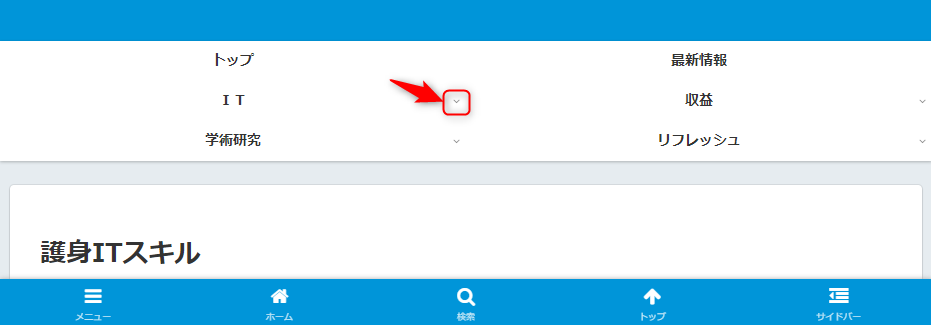 ヘッダーモバイルメニューにアイコンが表示されるため、サブメニューが展開できるように見える。