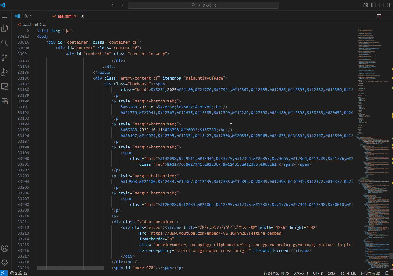 ブラウザで表示される生ソースの、本文部分をコピーさせていただきまして。