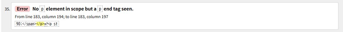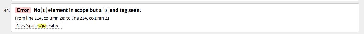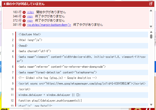 殆どのページにチェッカーを実行すると<p>タグの閉じ忘れがあります。