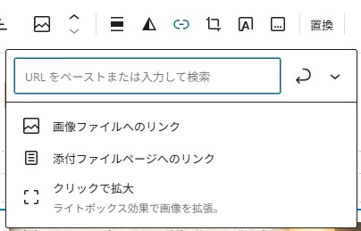 ブロックエディターで、画像を追加し、リンクをクリックすると、「クリックで拡大」が表示がされなくなった。