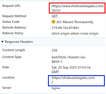 https:// shokuseitaigaku.com へとリダイレクトされます