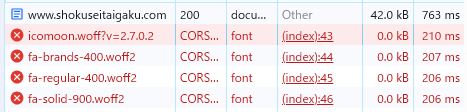 その結果、「wwwあり」の方は、アイコンフォントの読み込みがエラーになっていますね。