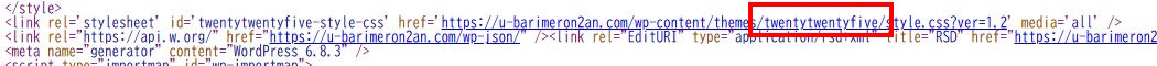 「Cocoon」ではなく、WordPress公式テーマ「Twenty Twenty-Five」が有効になっているようです。