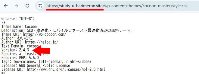 ※↑こちらに「Cocoon設定 → テーマ情報」にある「環境情報」を貼り付けてください。