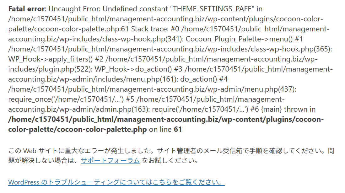 /public_html/wp-content/plugins/cocoon-color-palette/という独自のプラグインでエラーとなっています。
