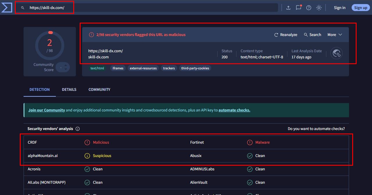 セキュリティベンダーが危険と判定しているようですから。