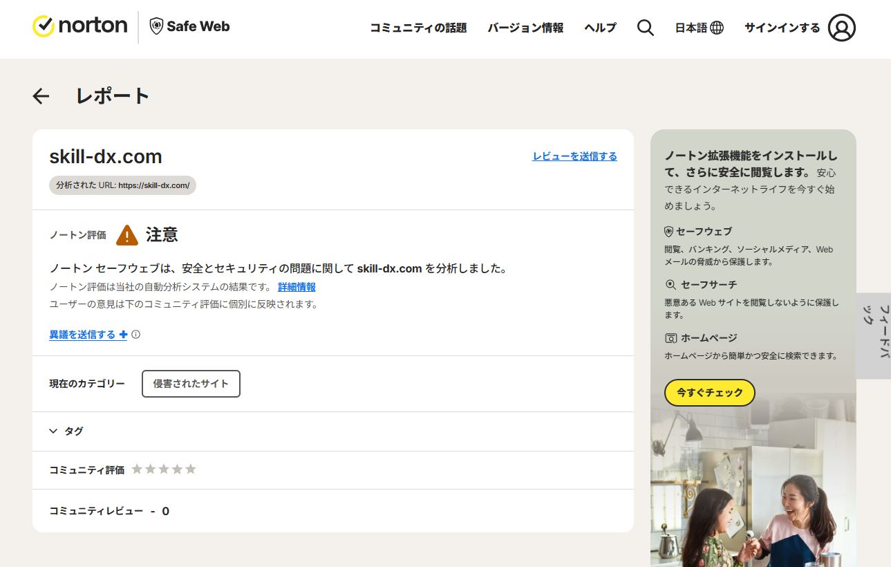 こういう状態のサイトにアクセスするのは、不安を覚えます。