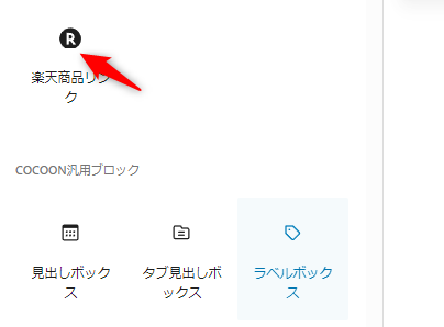 添付のように「楽天商品リンク」ブロックのアイコンの下が欠けている。