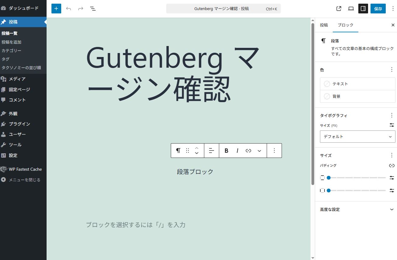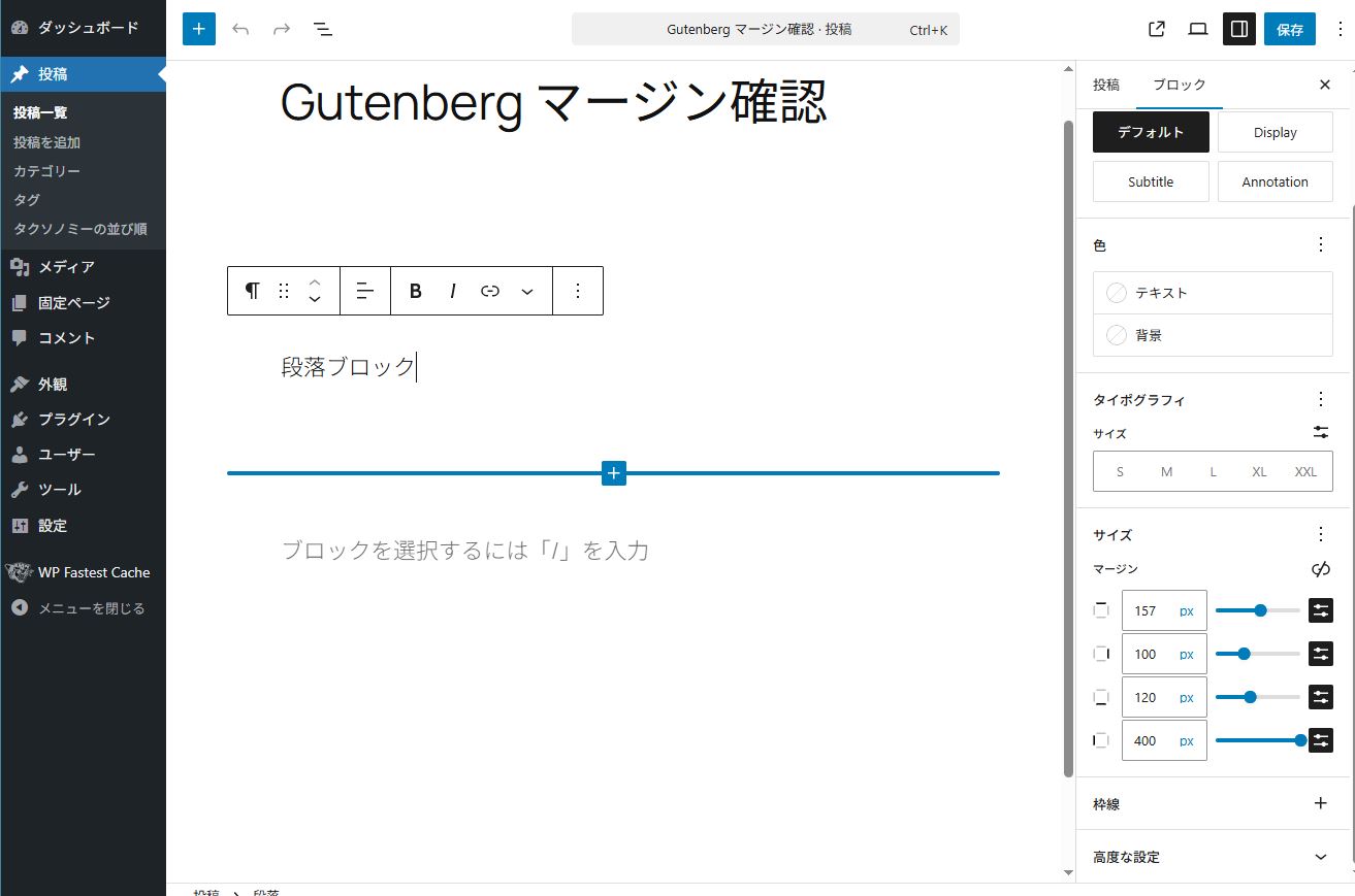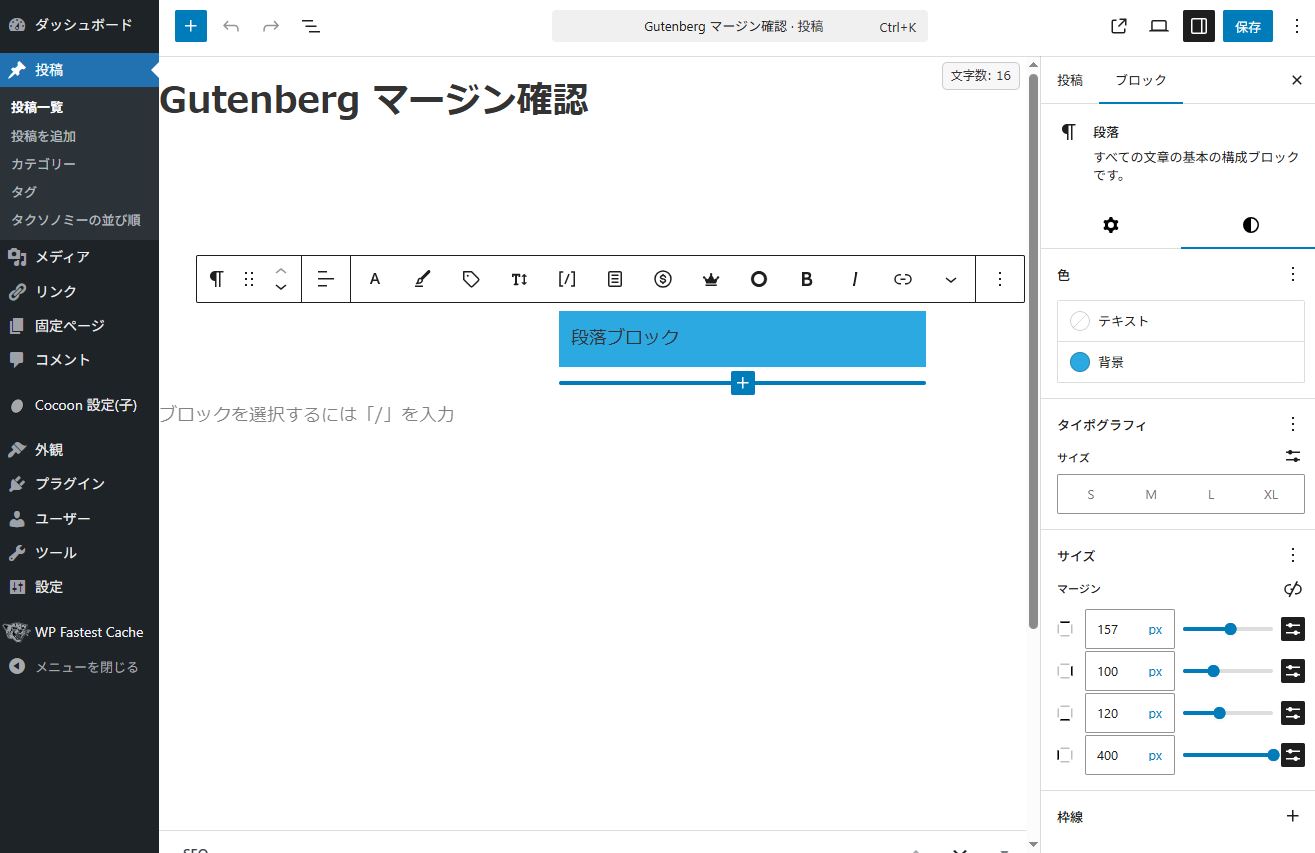 そちらについて、マージンのうち、上以外の項目についてGutenberg上では反映されないことに気づきました。