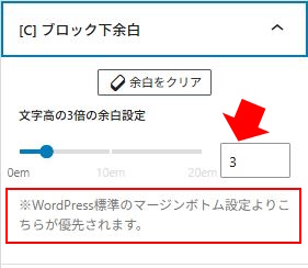 上記が同時に設定されている場合、「ブロック下余白」が優先されることを確認させていただきました。