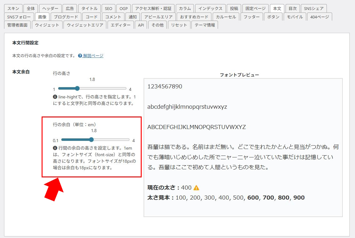 以下で[Cocoon設定]→[本文]→行の余白を反映している。