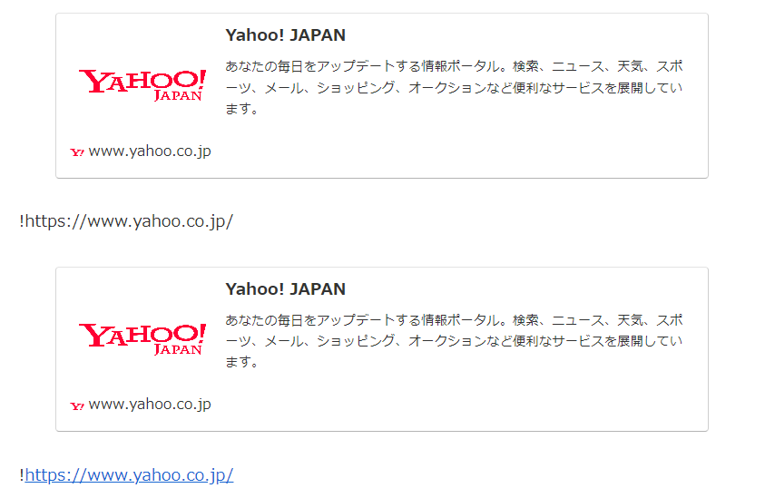 このときテキストリンクとなるが、先頭の「!」が付いたままとなる。