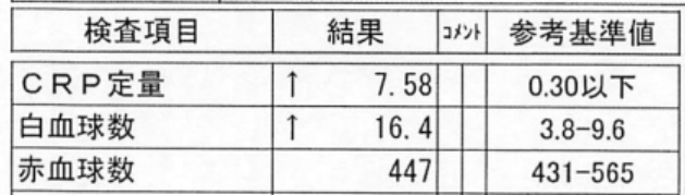今日前回の訪問診療の血液検査の結果が返ってきたけど、炎症反応が1.3とちょっと高かったので、やっぱ感染症のようでした。