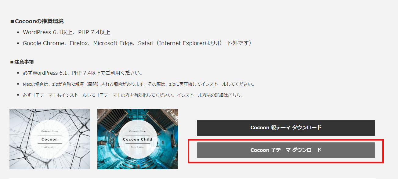 環境情報:※↑こちらに「Cocoon設定 → テーマ情報」にある「環境情報」を貼り付けてください。
