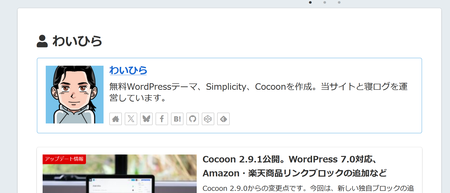 author/ユーザーIDで出てくるページでは投稿者名しか表示されないのでプロフィール情報やプロフィール画像も表示されるように設定したいです。