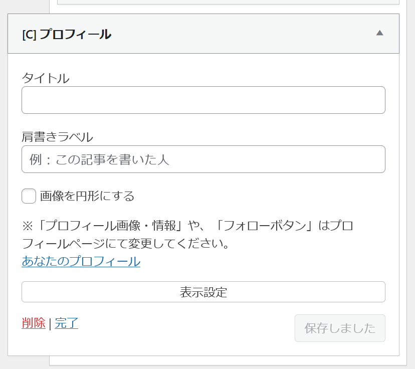 本来この入力欄はプロフィールボックスに付属するもので、元々プロフィールエリアの説明用につけました。