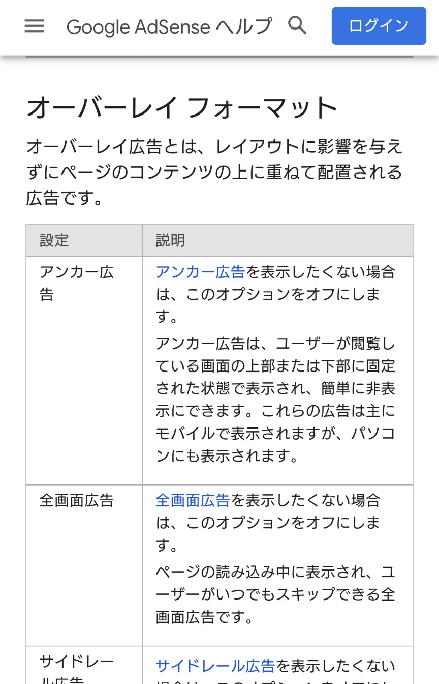 以下に記載のあるように、自動広告設定のオーバーレイフォーマットのところで設定します。