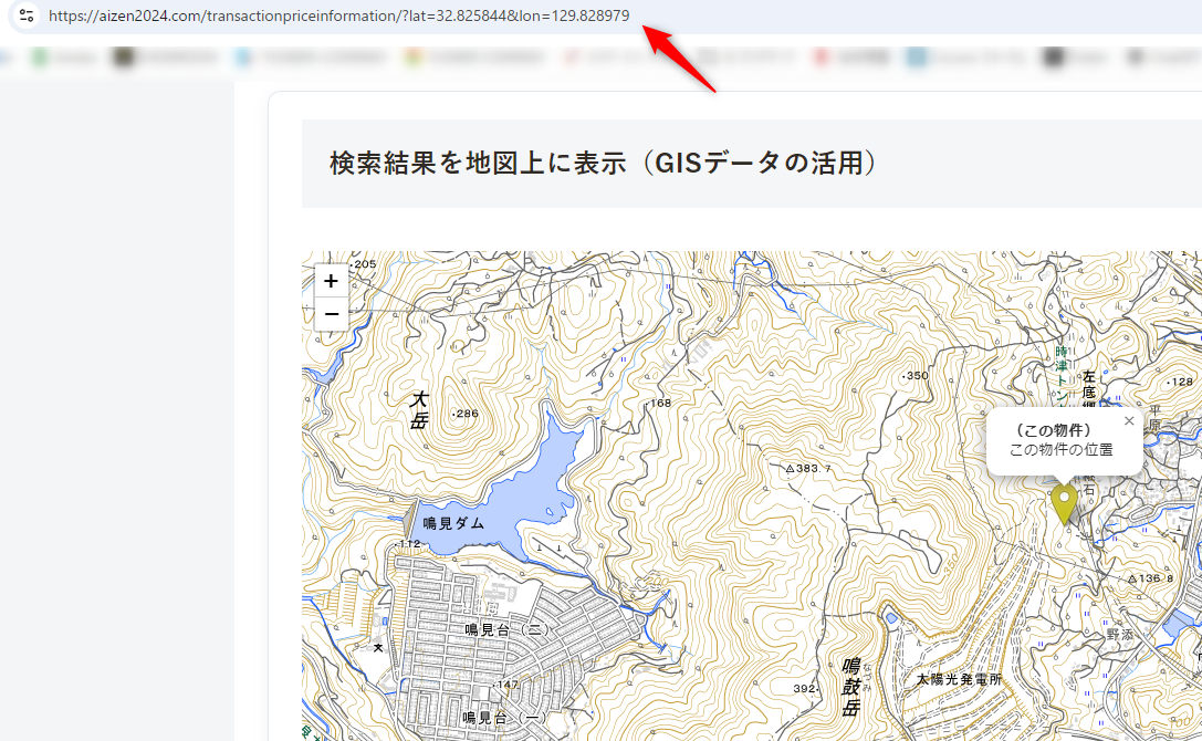 遷移先ページ(地図ページ): https://aizen2024.com/transactionpriceinformation/