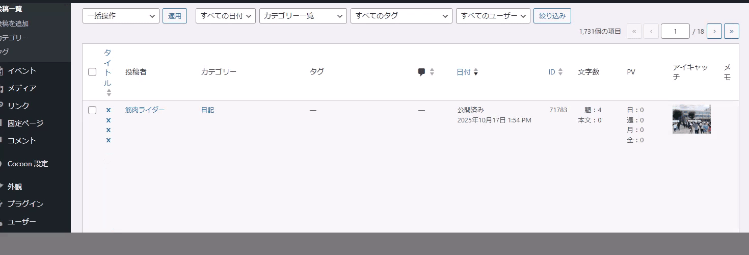 このため、PV、メモ、アイキャッチの列が消えてしまう。