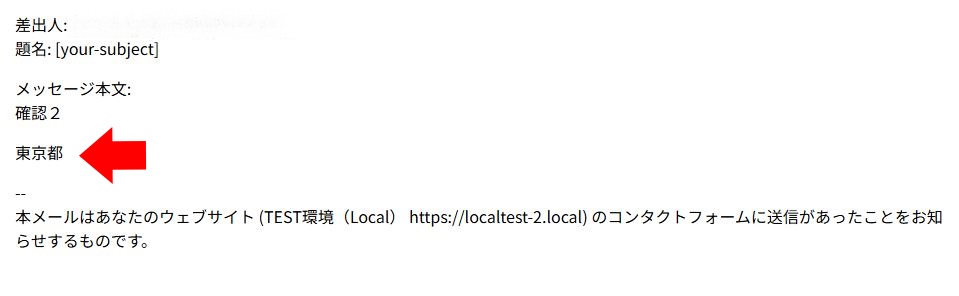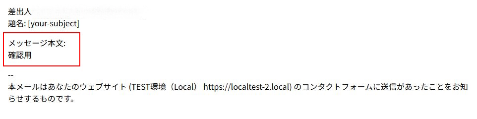 これで、フォームの「任意入力」欄にも、入力しましたが、送信してみると、以下のようにメール本文しかありませんでした。