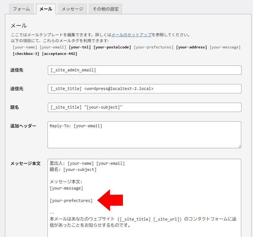 例えば、以下のように、「都道府県」欄をメールに編集するように追加しました。