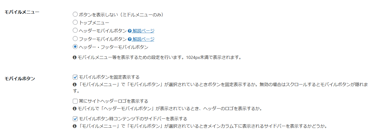 こちらのサイトを編集中、Cocoon設定で「ヘッダーモバイルボタン」を表示させる設定にしてみたのですが、表示させることができず困っています。