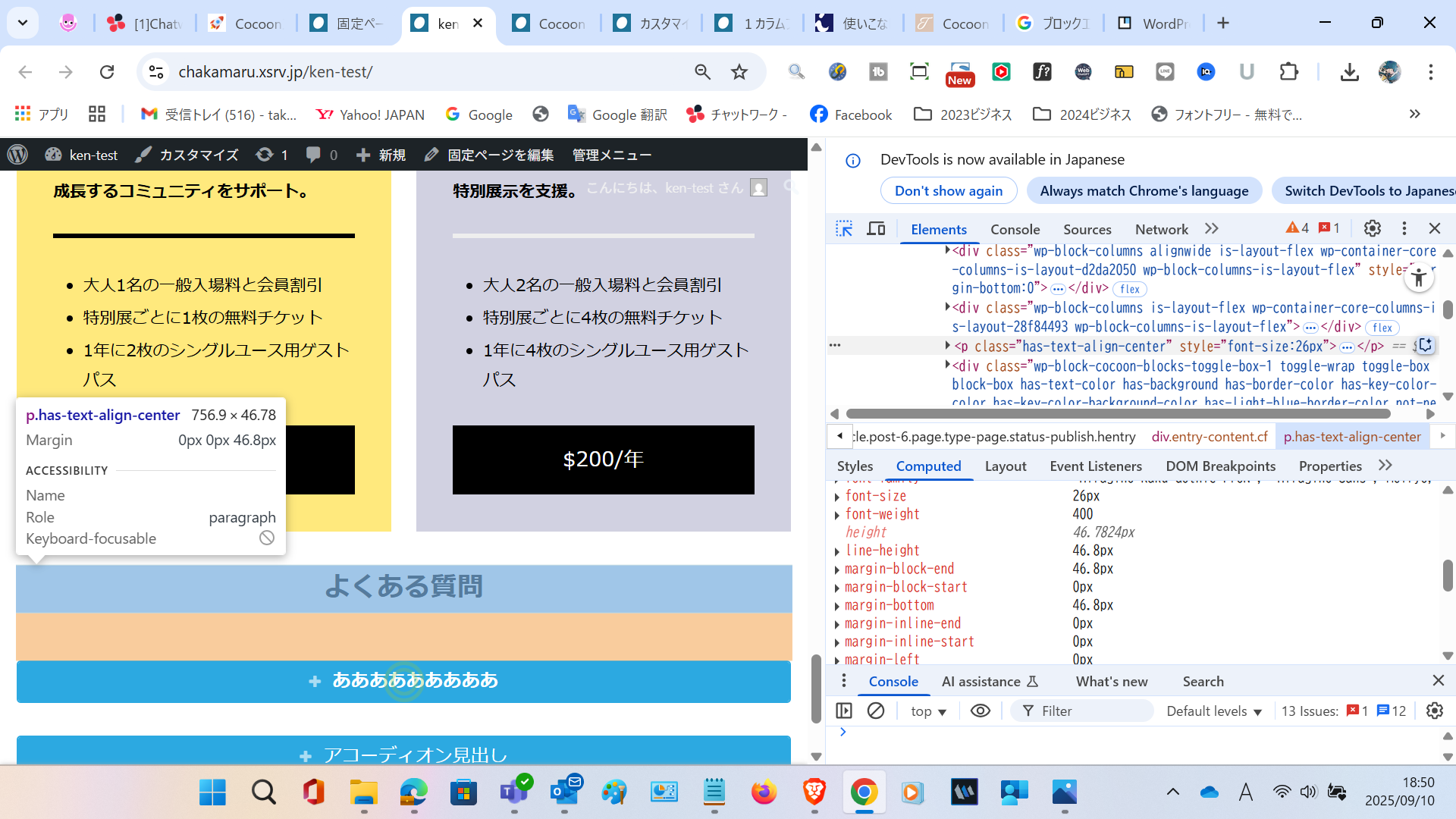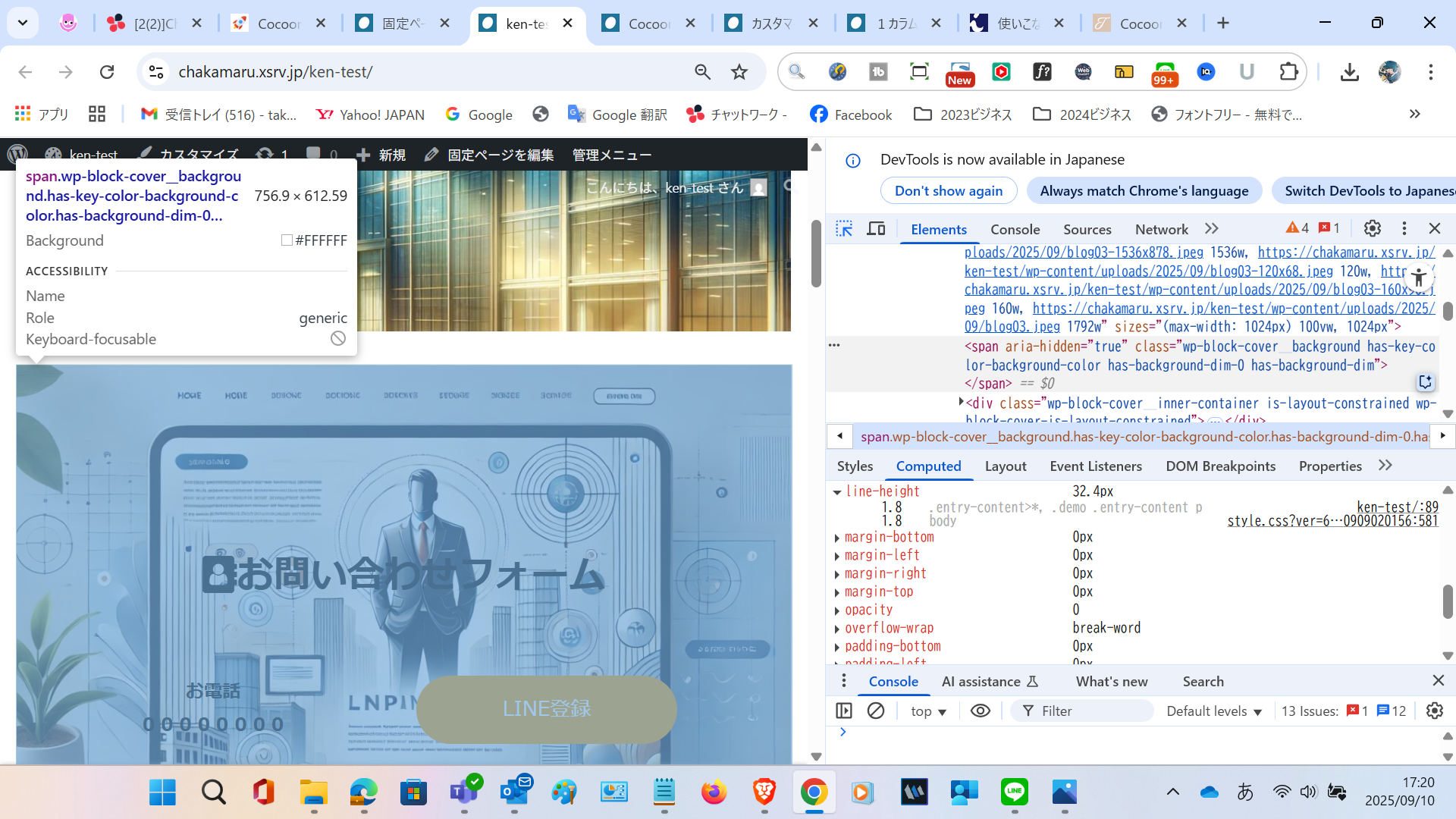 なお、デザイン・CSSを編集いただく上ではデベロッパツールは必須級のツールになりますので、これを機に使えるようになっていただくと良いかと思います。