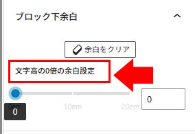 ここを、調整することで、自由にブロック下余白を調整できます。