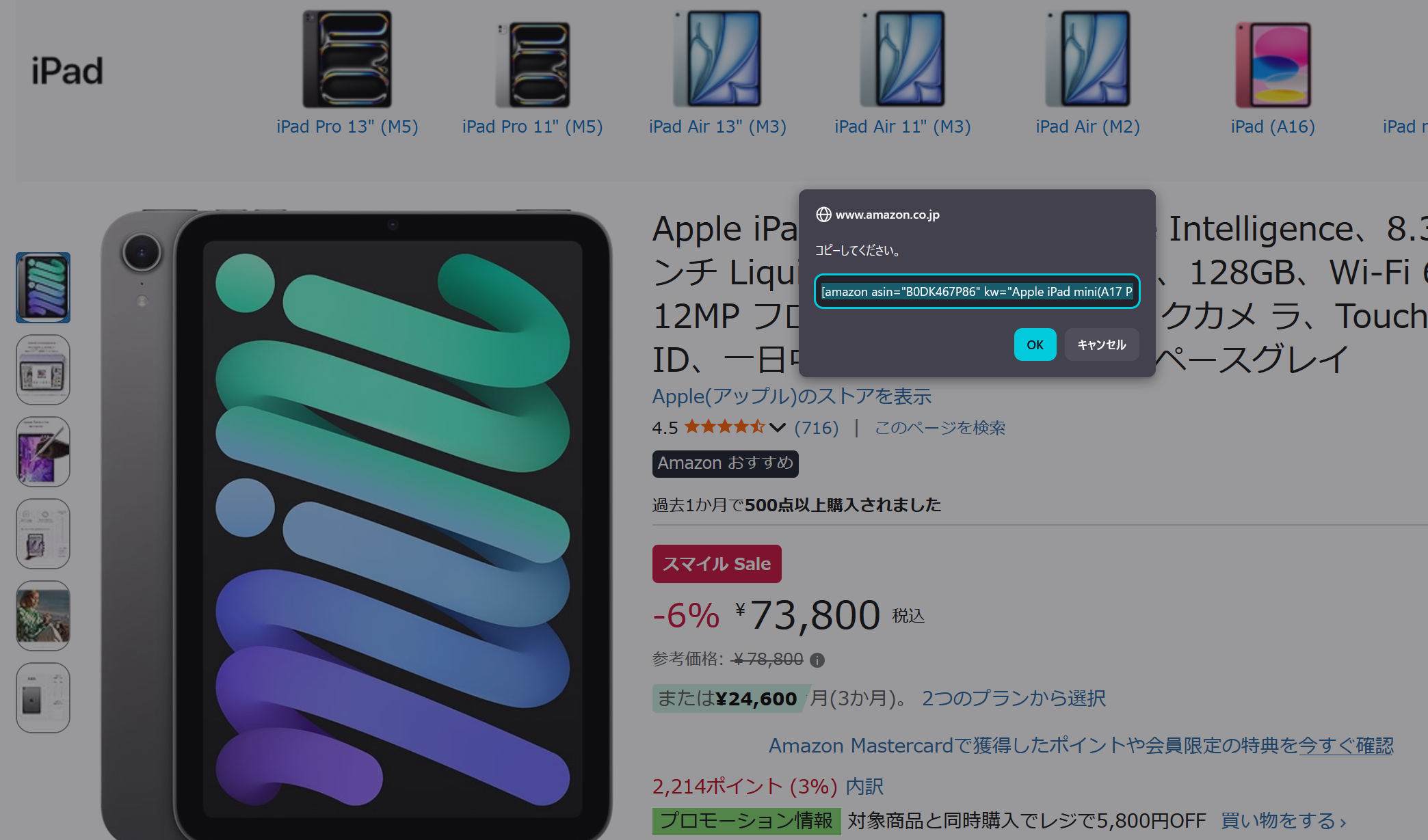 「ブックマークレットをクリックして、Amazon商品リンクのショートコードを作ろうとしたら…」ということであればわかります。