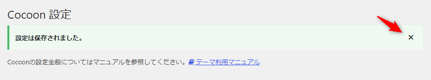 Cocoon設定で「変更をまとめて保存」を実行した際に表示される画面上部のメッセージについても、同様に「×」を表示して消せるようにした方がよいのではないでしょうか。