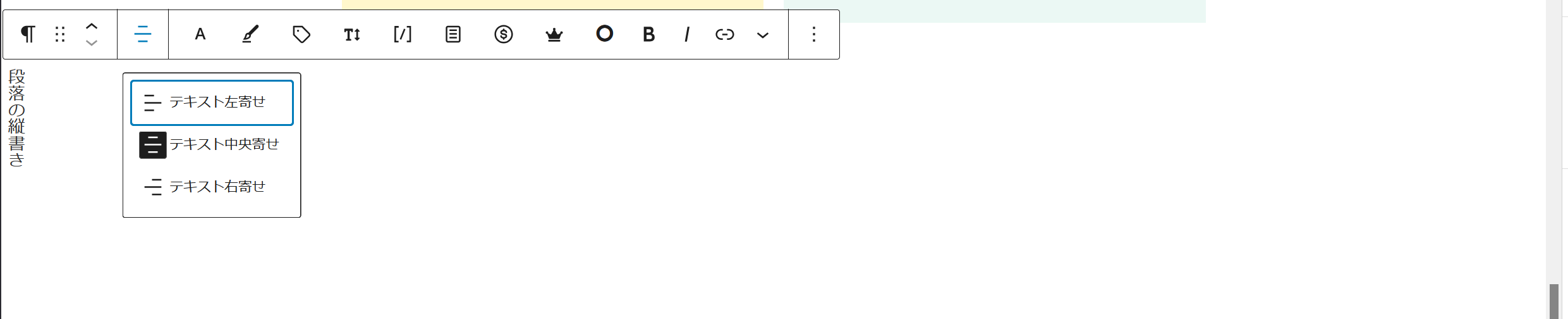 WordPress 6.4以降では、段落ブロックで縦書き表示が可能になっています。