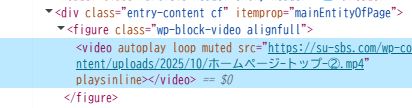 iPhone Safariで自動再生するには「playsinline」が必要という話ですが、私は当該機種を持っていませんので、そこは試していません。