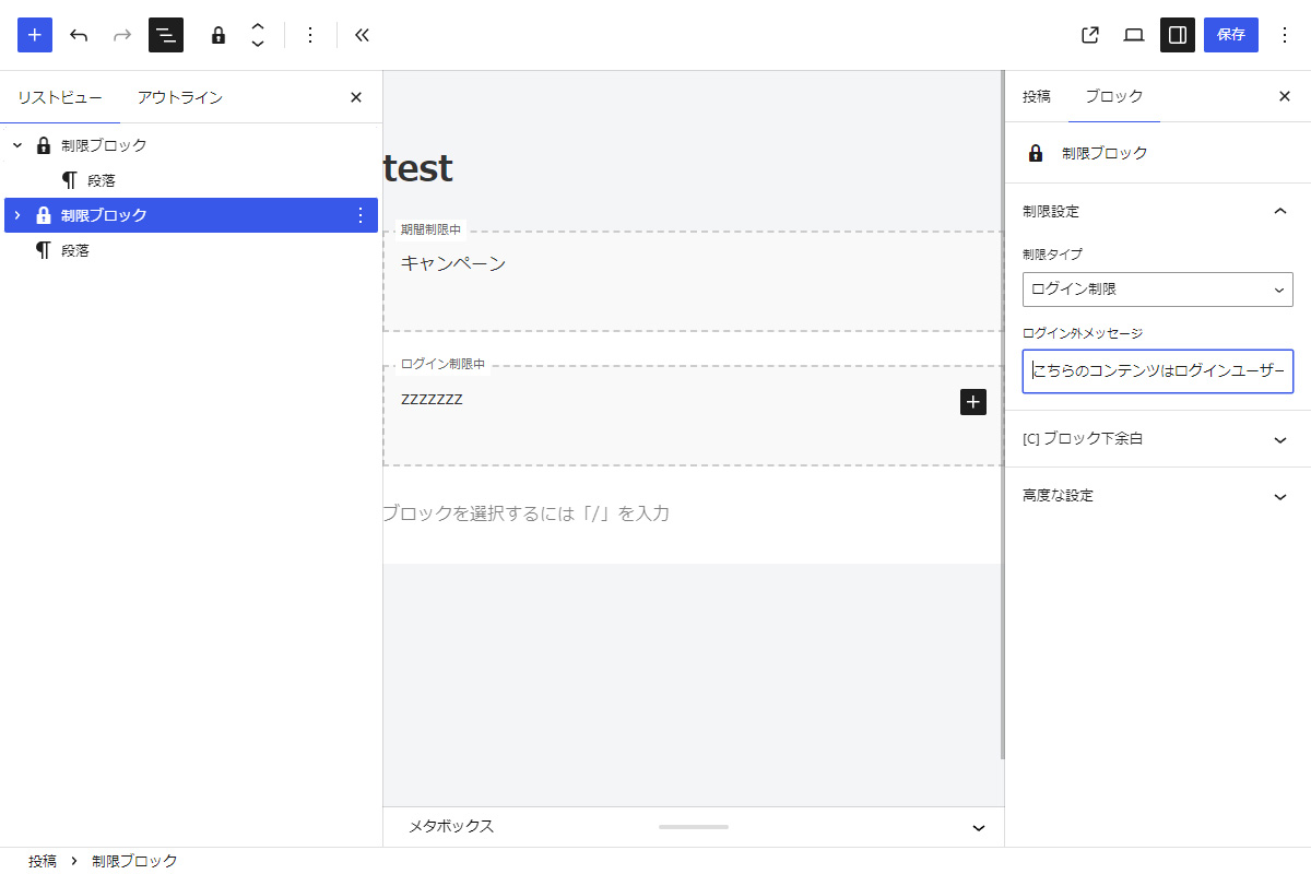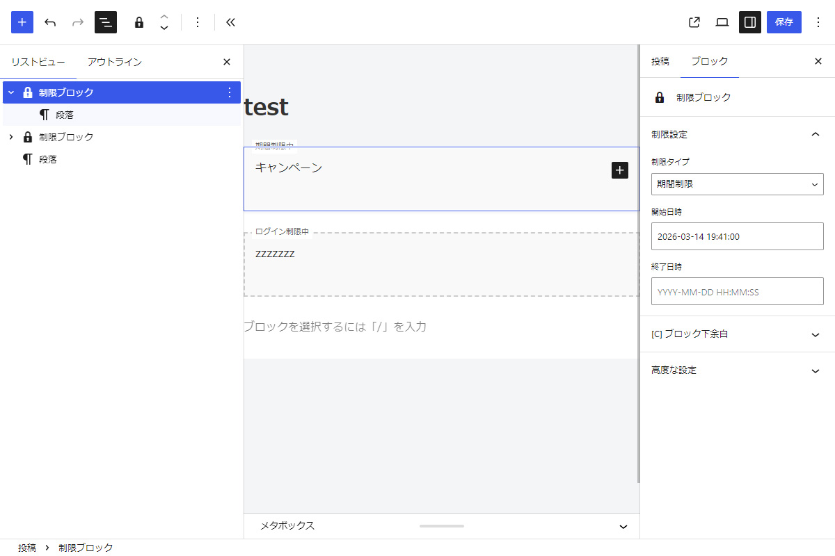 XWRITEの制限ブロックをまね、制限ブロックとして2つをまとめてみました。