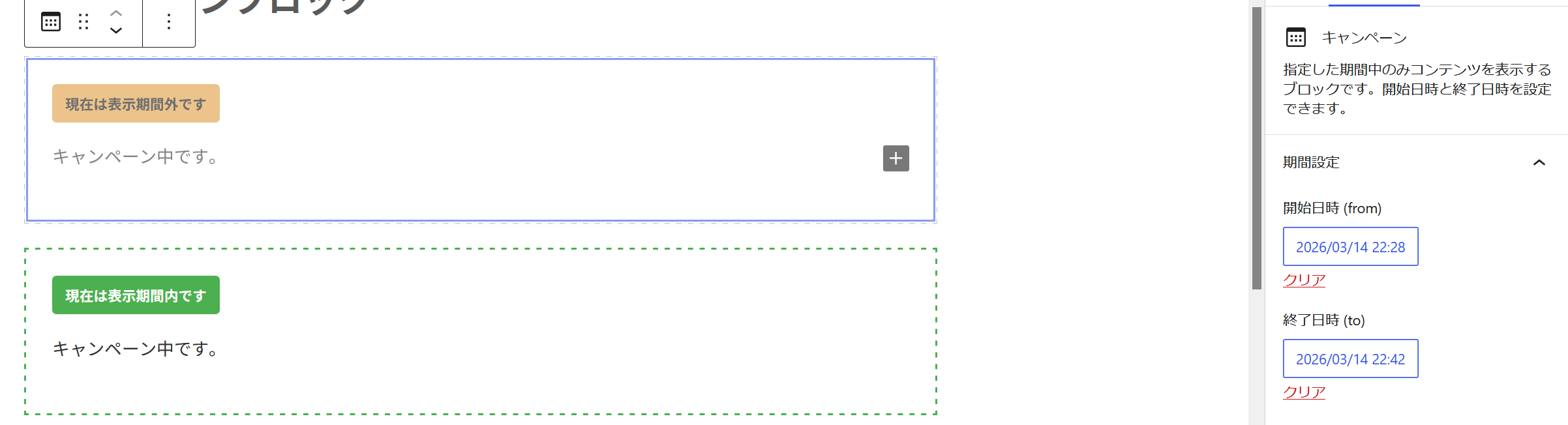 campaignショートコード、login_user_onlyショートコードを活用しブロック化する提案です。