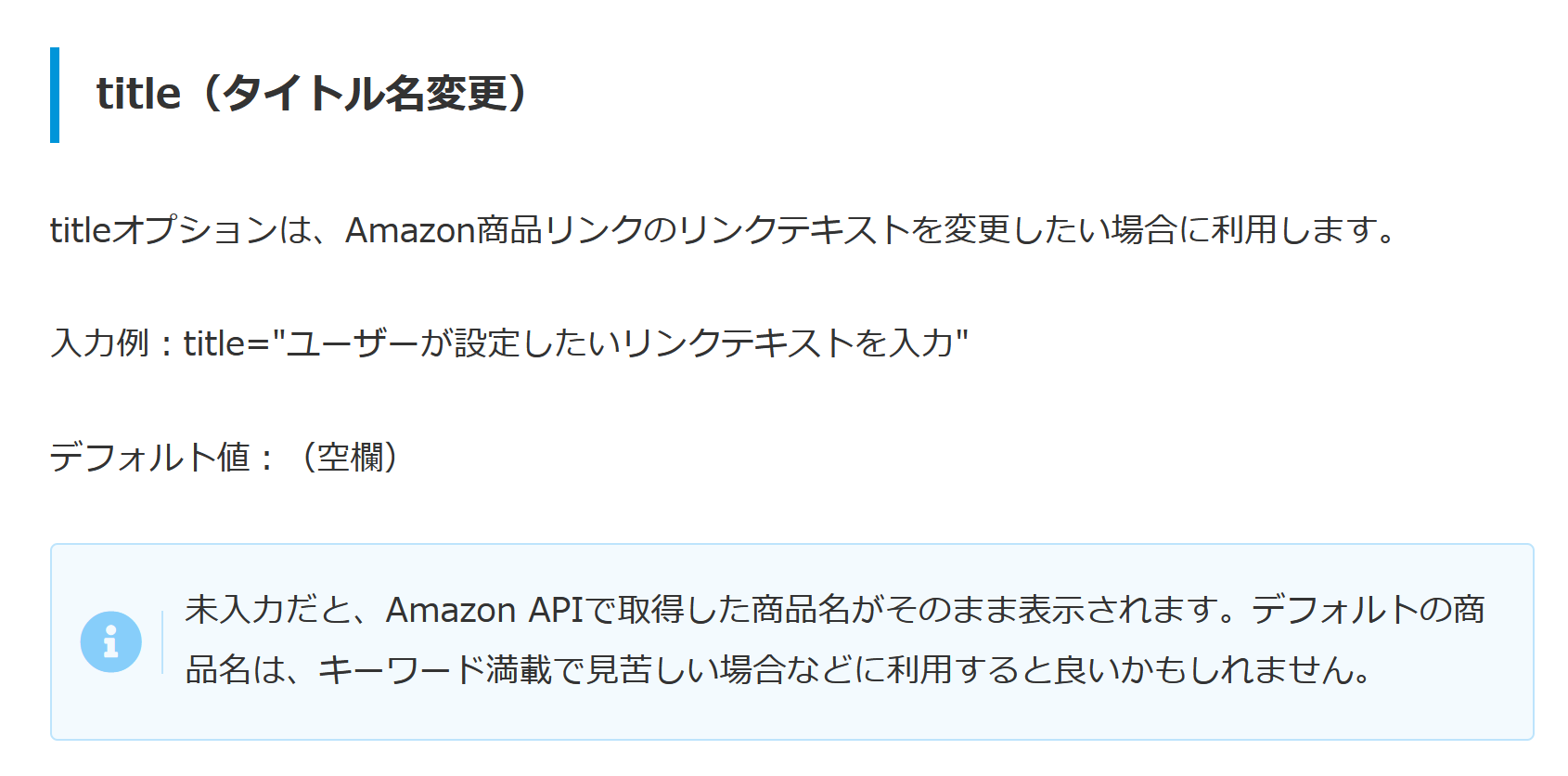titleオプションも使えるようにしておきました。