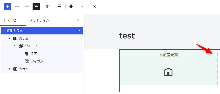 「グループ」ブロックでリンク設定のとき、アイコンが表示されない。