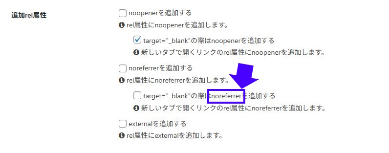 ・Cocoon設定「本文」の「外部リンク設定」と「内部リンク設定」のそれぞれの「target="_blank"の際はnoopenerを追加する」の「noopener」を「noreferrer」へ文言調整