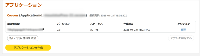 ページ先の「アプリケーションを作成」ボタンを押します。