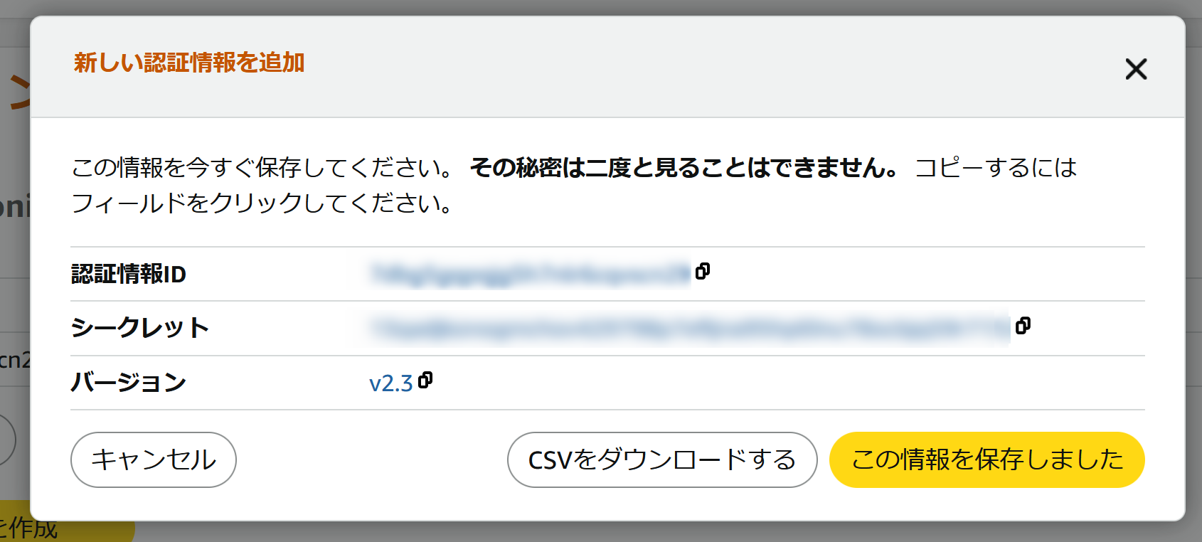 「シークレット」が表示されるのは初回だけのため、必ず何かに記録しておいてください。