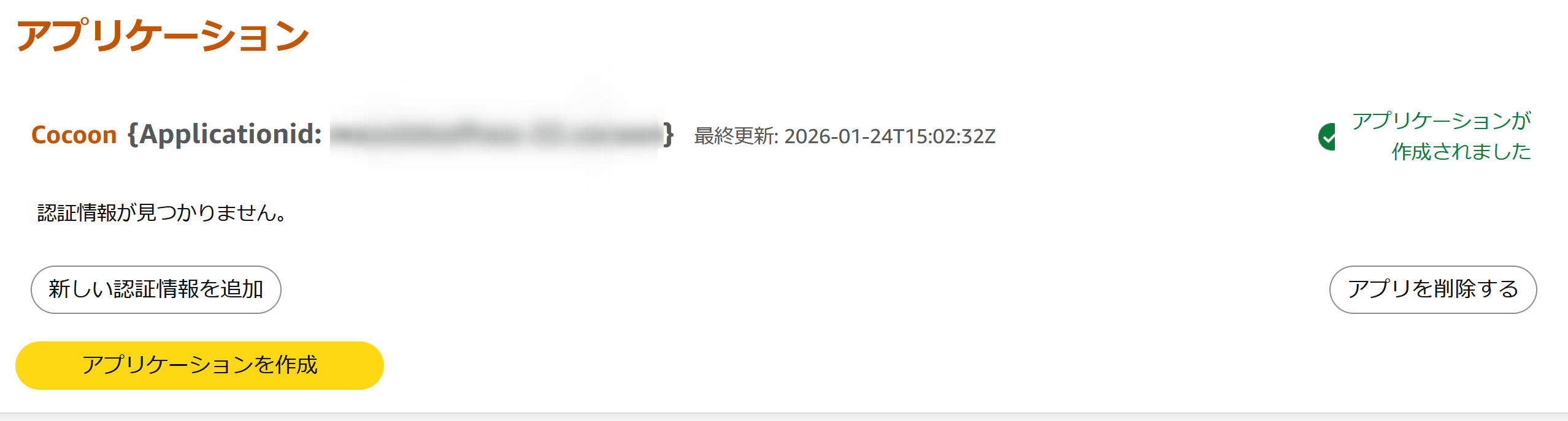 ページ先の「アプリケーションを作成」ボタンを押します。